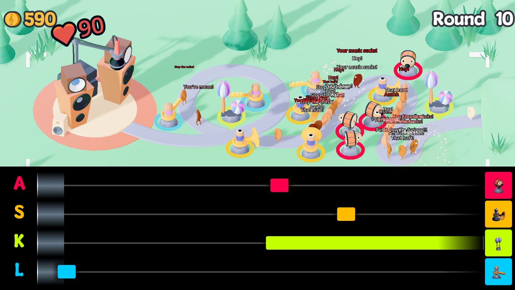 Maracas | Deals damage only in one direction. Make sure to place facing the path. Deals area of effect damage. |